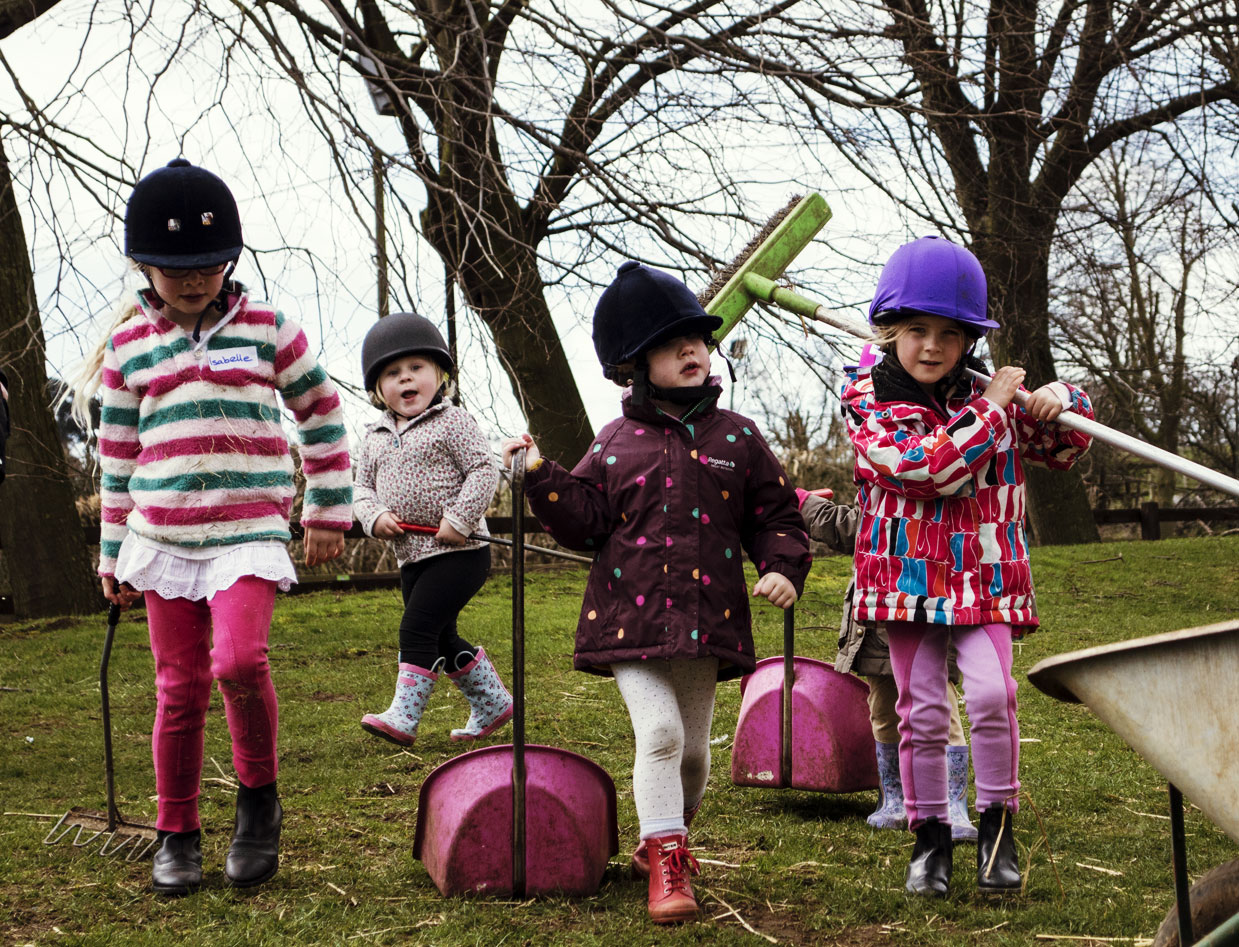 Children under 11 are eligible for this supervised activity in which they learn the basics of the ponies welfare, mucking out, grooming and handling them in day to day situations. This is a preparatory exercise for when the children are 11 and are the ready to be pony club helpers earning free riding lessons.